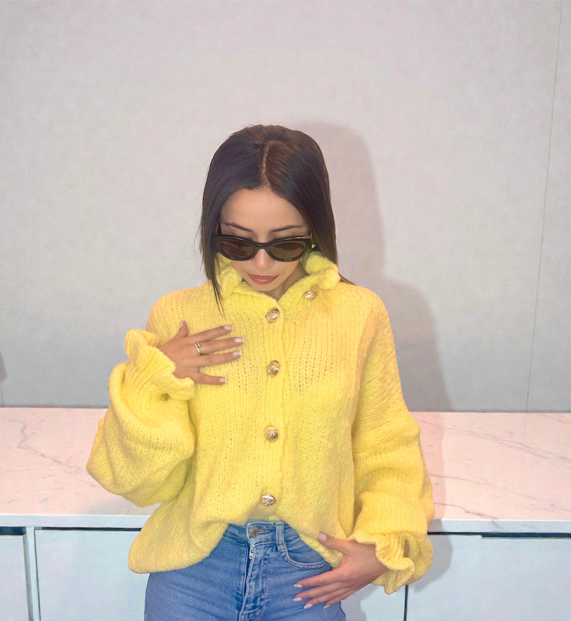 Craquez pour l'élégance naturelle de ce cardigan en laine et mohair. Confectionné dans une maille douce et épaisse, il offre un confort absolu et une chaleur idéale pour la saison. Son design se distingue par ses manches bouffantes et ses boutons nacrés qui ajoutent une touche chic et féminine. Facile à assortir, il se porte aussi bien sur une robe bohème que sur un pantalon taille haute.